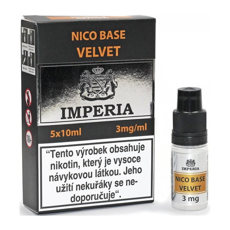 Představujeme Vám bezkonkurenční báze pro výrobu e-liquidu IMPERIA e-NicoPharm. Jedná se o český výrobek pocházející ze státem schválené farmaceutické laboratoře. Výroba bází IMPERIAe-NicoPharm probíhá nejmodernější ultrazvukovou metodou. Báze IMPERIA tvoří PropylenGlykol (PG), rostlinný Glycerol (VG) a nikotin v nejvyšší možné (99,99%) farmaceutické kvalitě. Samozřejmostí je nejvyšší jakost dle standardu USP.